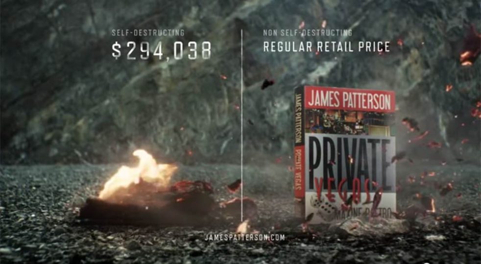 L’ultima idea è il lancio di un sito, “The Most Thrilling Reading Experience Ever”, che propone in vendita in anteprima rispetto all’uscita in libreria un suo romanzo inedito, Private Vegas. La particolarità? Il libro è venduto a ben 294.038 dollari, e potrà acquistarlo un solo lettore nel mondo. Dopo 24 ore, infatti (come spiega efficacemente il video qui di seguito), il romanzo si “autodistruggerà”. Con i proventi dall’insolita vendita Patterson finanzierà le librerie indipendenti americane. A disposizione del fortunato (e soprattutto ricco) lettore, tra l’altro, una cena con l’autore e tutta la sua produzione autografata.